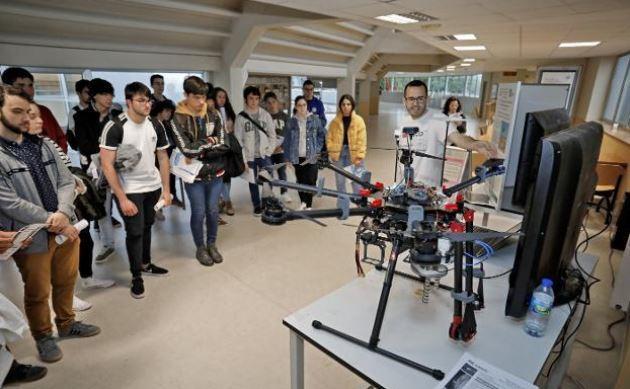 Área TSC de la Universidad de Oviedo Compartir: facebook linkedin twitter Whatsapp email Yuri Álvarez muestra a los escolares el dron ideado por la alumna María García, capaz de detectar minas antipersona e incluso un cádaver enviando ondas al suelo