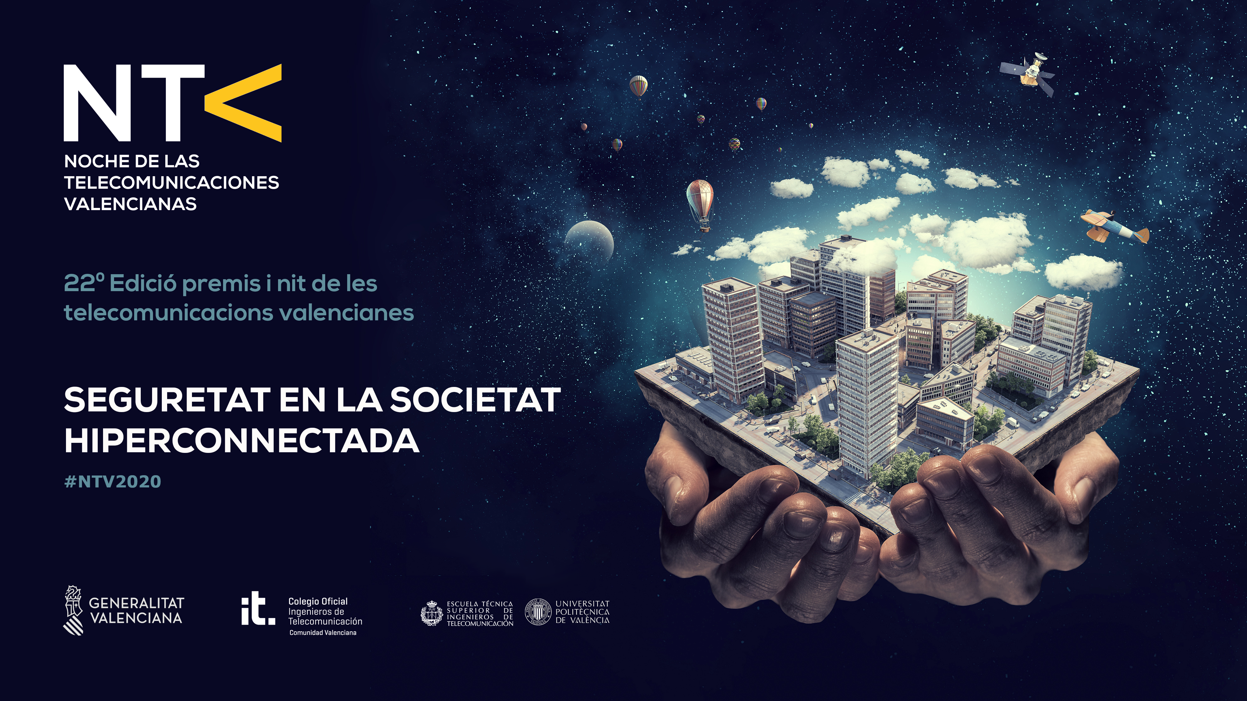 La Asocaición y el Colegio Oficial de Ingenieros de Telecomunicación de la Comunidad Valenciana (AVIT/COITCV), la Escuela Técnica Superior de Ingeniería de Telecomunicación de la Universitat Politècnica de València (UPV) y la Generalitat Valenciana lo tienen todo a punto para que el próximo jueves 12 de noviembre se celebre la 22ª edición de los Premios y Noche de las Telecomunicaciones Valencianas (#NTV2020). Se trata de un evento anual que pretende apoyar el tejido empresarial de la Comunitat Valenciana, poniendo de manifiesto la importancia de las tecnologías digitales y de gestión del conocimiento en la evolución de nuestra sociedad.