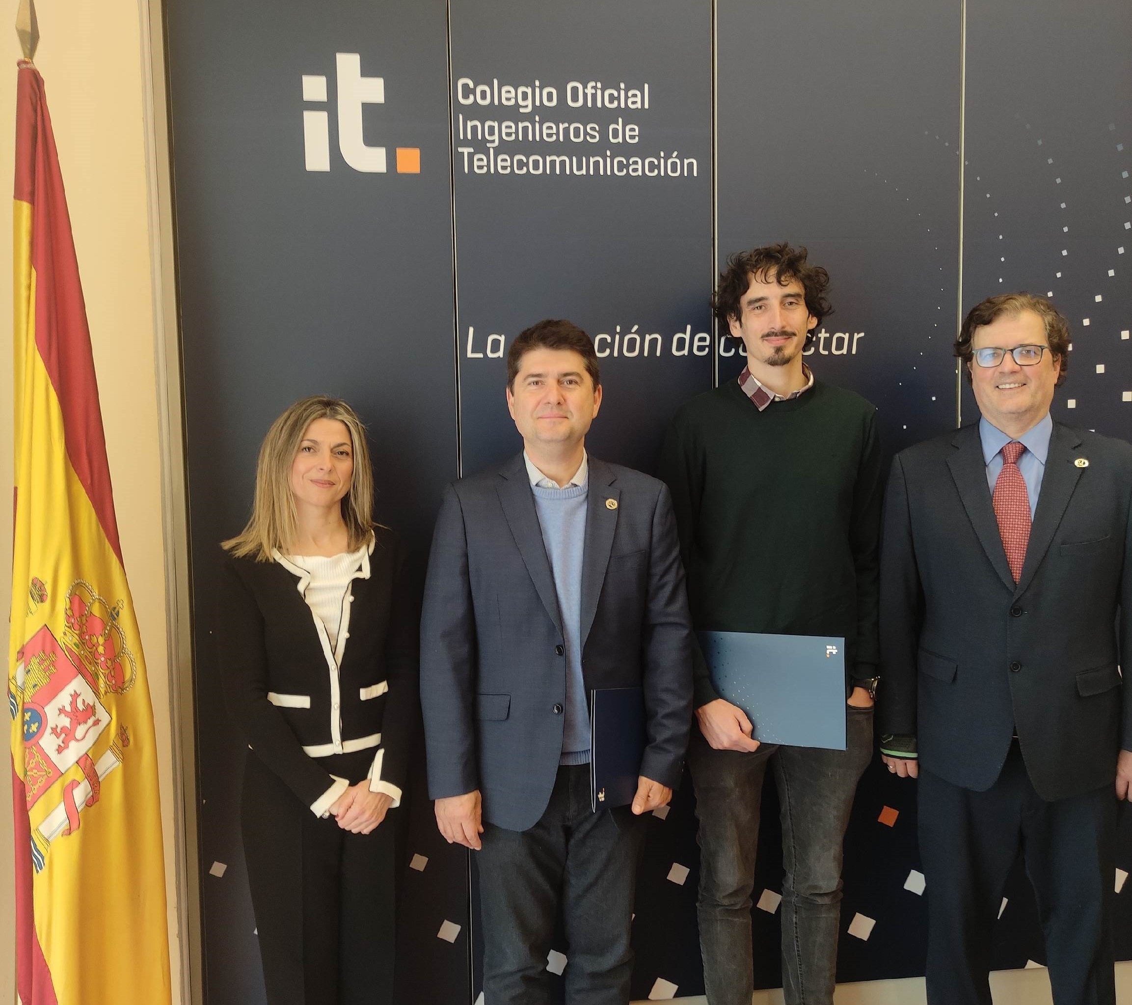 Al acto de la firma del convenio también asistieron por parte de la AJE, Javier Moguerza, académico y Cristina Díaz, secretaria técnica, mientras que por el COIT estuvo presente Adrián Nogales, director de Relaciones Institucionales.