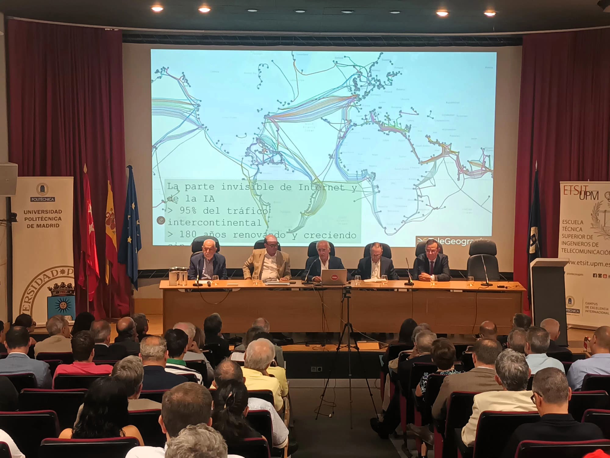 El 17 de septiembre de 2025 el Aula Magna de la ETSIT-UPM acogió la jornada, organizada por el Foro Histórico de las Telecomunicaciones (FHT), de presentación del libro “Construyendo la senda invisible de Internet”, obra de la senda de Cables Submarinos del FHT, editado por la AEIT y el COIT.
