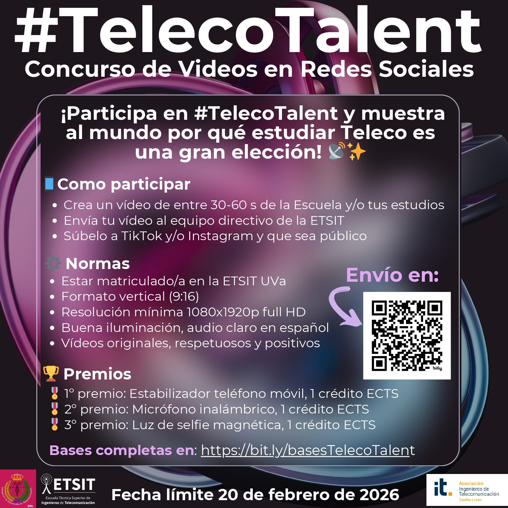 La Asociación de Ingenieros de Telecomunicación de Castilla y León colabora junto con la E.T.S.I.T. de la Universidad de Valladolid y la delegación de alumnos, en la convocatoria del I Concurso #TelecoTalent