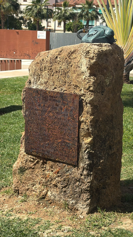 Con el fin de recordar la importante actividad comercial que desempeñó esta factoría en Málaga, un grupo de antiguos empleados de la compañía solicitaron la instalación de la placa, que consiste en un emblema de bronce y la reproducción de un teléfono modelo Heraldo.